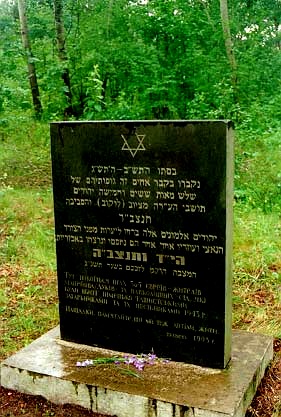 מצ'יוב - המצבה ביער, חדשה יותר, לזכר הנספים ממצ'יוב. הוקמה בעובי היער שבקרבת העיירה. |