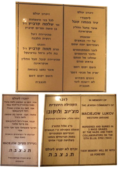 לוחות זיכרון ליהודי מצ'יוב שניספו בשואה, תרומת אברהם בייג'יל שהנציח על לוח נוסף, גם את קרובי משפחתו. |