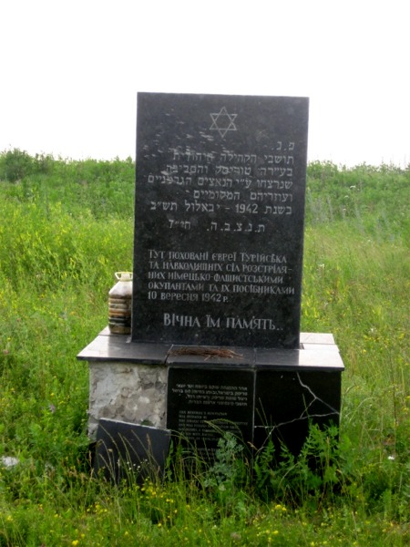 מצ'יוב - המצבה ליד המנזר, לזכר 400 יהודי העיירה. ממוקמת ליד המנזר הסמוך לואדי במצ'יוב. |