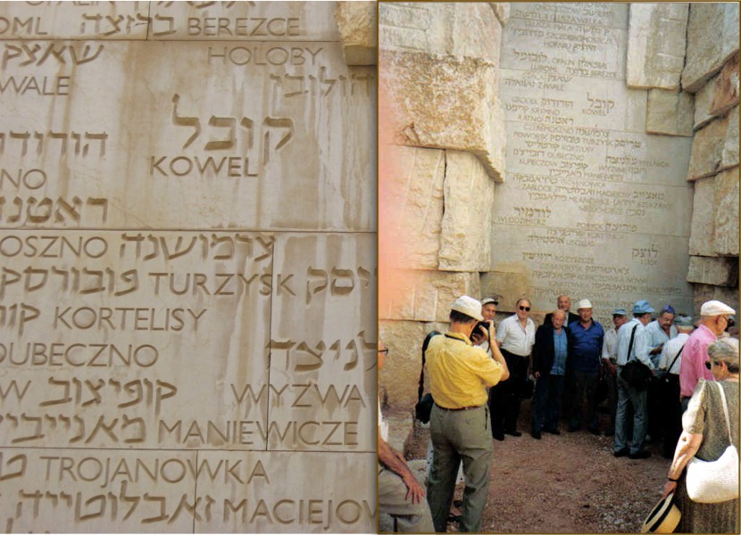 מערת הזיכרון ב"יד ושם". לוח זיכרון ליהודי קובל שניספו בשואה, שניתן בעקבות תרומת תמר קרביץ-גורפינקל ל"יד-ושם".