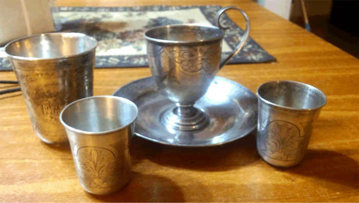 ציפוי דמוי כסף על חנוכיה מנחושת.